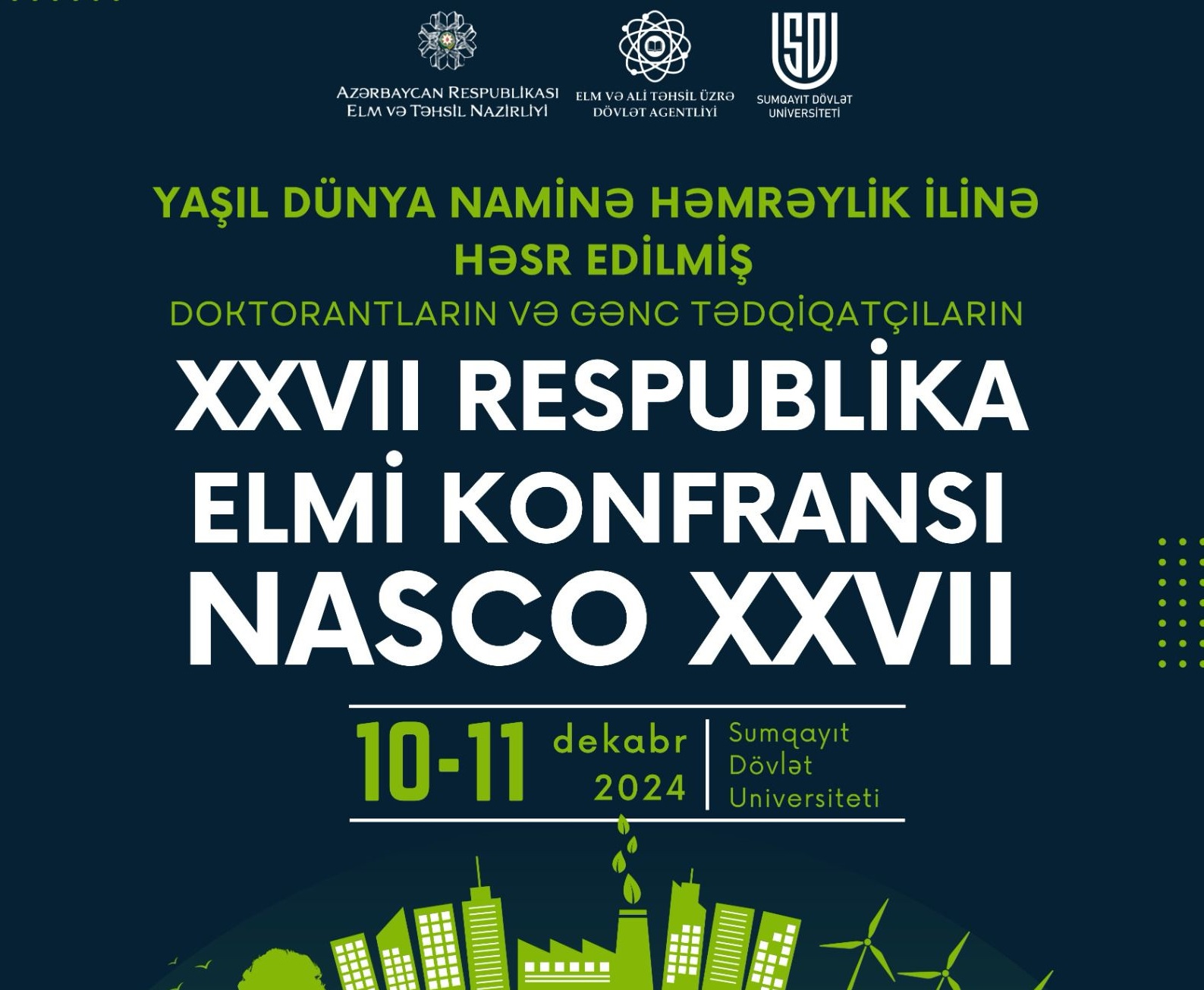 Sumqayıt Dövlət Universiteti (SDU) bu ilin ən mühüm və nüfuzlu elmi tədbirini elan edir! Doktorantların və Gənc Tədqiqatçıların XXVII Respublika Elmi Konfransı (NASCO XXVII)... Davamı