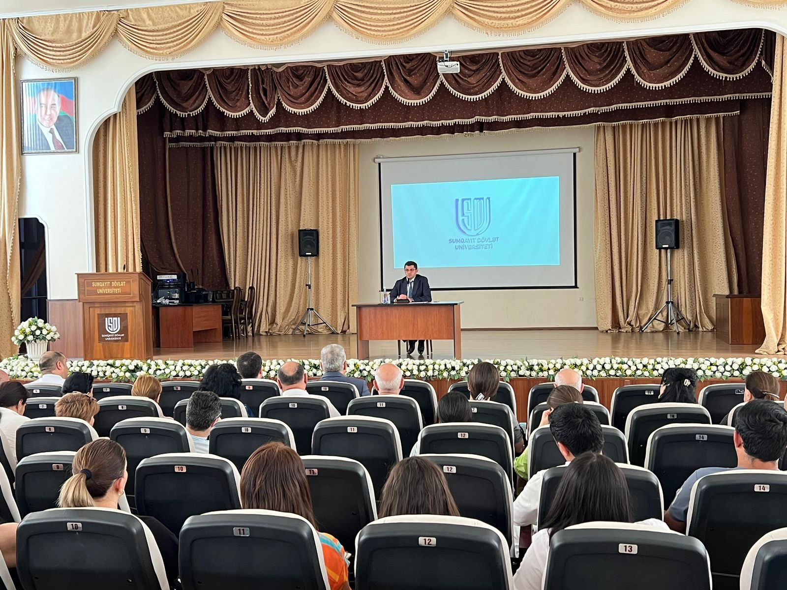 İyulun 8-də Sumqayıt Dövlət Universitetində ölkə ali təhsil müəssisələrinə qəbul imtahanlarında iştirak etmiş sumqayıtlı abituriyentlərlə görüş keçirildi.