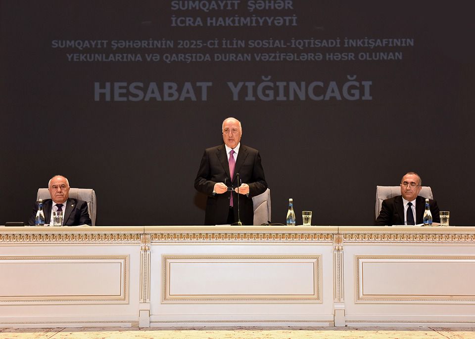 Sumqayıt şəhərində 2025-ci ilin sosial-iqtisadi inkişafının yekunlarına və qarşıda duran vəzifələrə həsr olunmuş hesabat yığıncağı keçirilib. “Kimyaçı” mədəniyyət sarayında t... Davamı